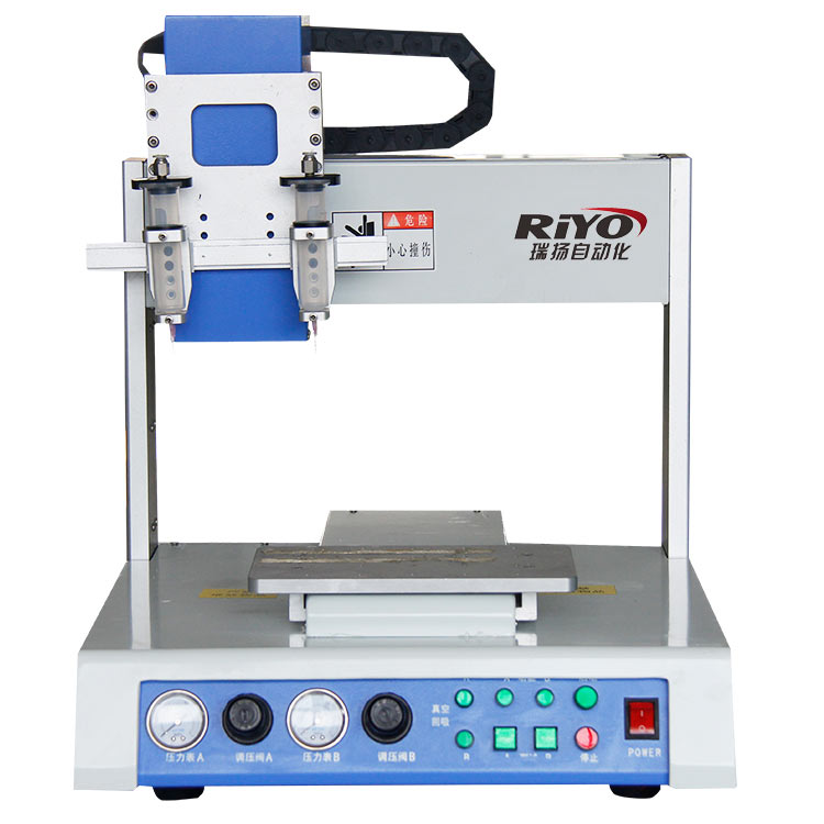 那點膠機該如何保養呢?首先更換膠種,需清洗管路。此時先關閉進料閥,打開排料閥,將膠桶剩余膠料排出后,關閉排料閥打開進料閥將清洗溶劑倒入儲膠桶內,啟動機體,按平時操作方式將溶劑壓出沖洗。點膠機在膠水大量使用前,請先小量試用,掌握產品的使用技巧,以免差錯,當測試沒問題時,再用雙液滴膠機或雙液灌膠機進行大批量的生產;抽真空系統對膠水進行抽真空除泡處理,以排除攪拌過程中產生的氣泡,或靜置10-20分鐘再使用,以使混合時產生的氣泡及時排除,混合在一起的膠量越多。混合在一起的膠量越多,其反應就越快,固化速度也會越快,所以要根據實際生產情況進行合理配膠,否則造成膠水的浪費。排除意外,提高生產效率。如今液體控制技術和點膠設備廣泛地應用到現代工業中的各種生產領域。 機臺長時間停用時應當拔下電源,這樣不僅能使機器的壽命延長而且還會省下來不少的電費。