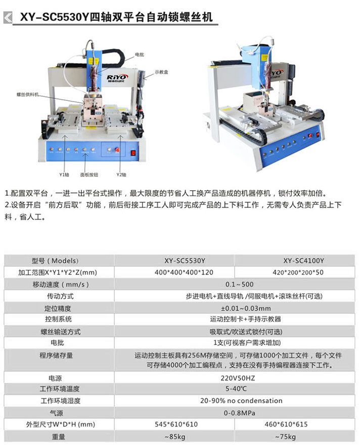 • XY-SC5530Y四軸雙平臺自動鎖螺絲機