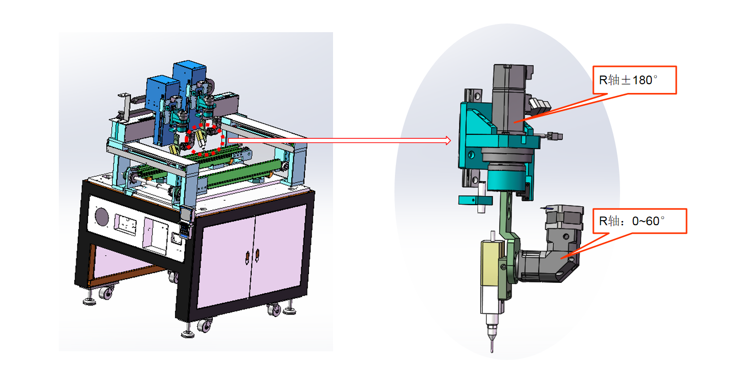 X250*Y350*Y120mm,R、V軸可旋轉0~180°,U\W軸可擺動0~60° |